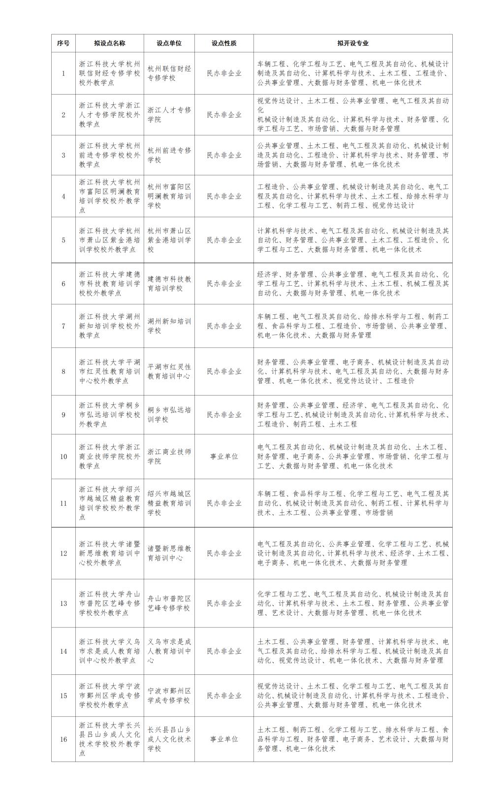 浙江科技大学2026年拟设置高等学历继续教育校外教学点及开设专业公示