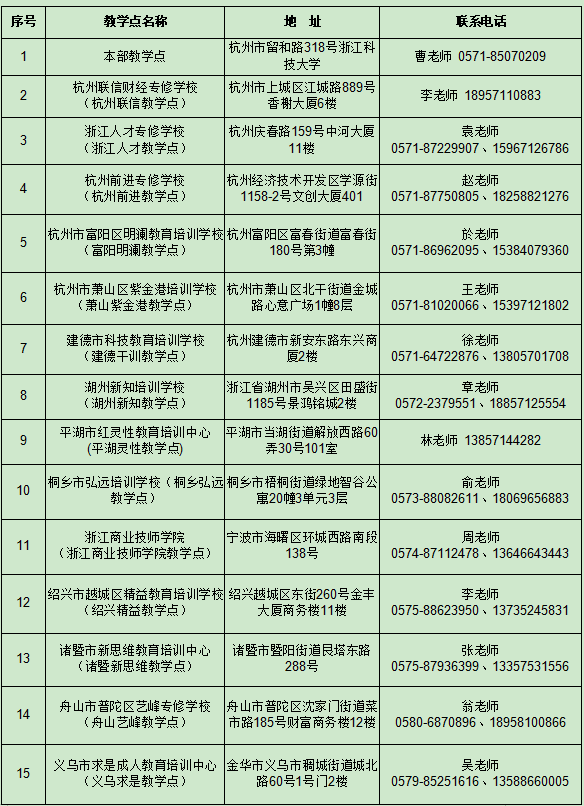 附件2: 浙江科技大学教学点信息